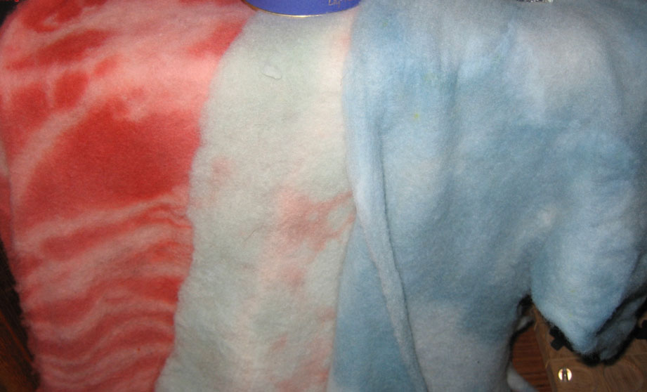 needlefelts dyed and drying ready for the next stage need about 5 in differing colours about A3 size.