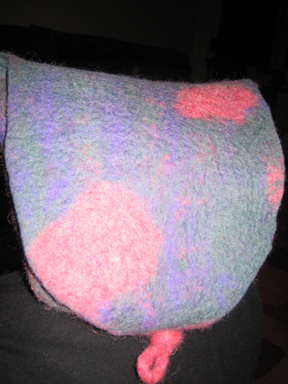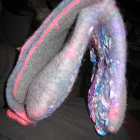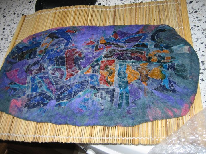 I got to thinking about decorating my inner flaps but I went for a nuno look inside.this was made to prefelt stage then placed on the resist.