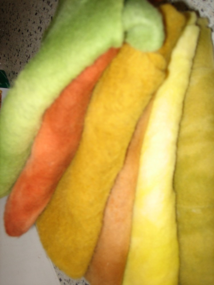 I can almost taste these colours so zingy ,these are the new dyed colours for the new asymetrical top, cannot wait to get started glad it is raining tomorrow a good excuse to be inside felting