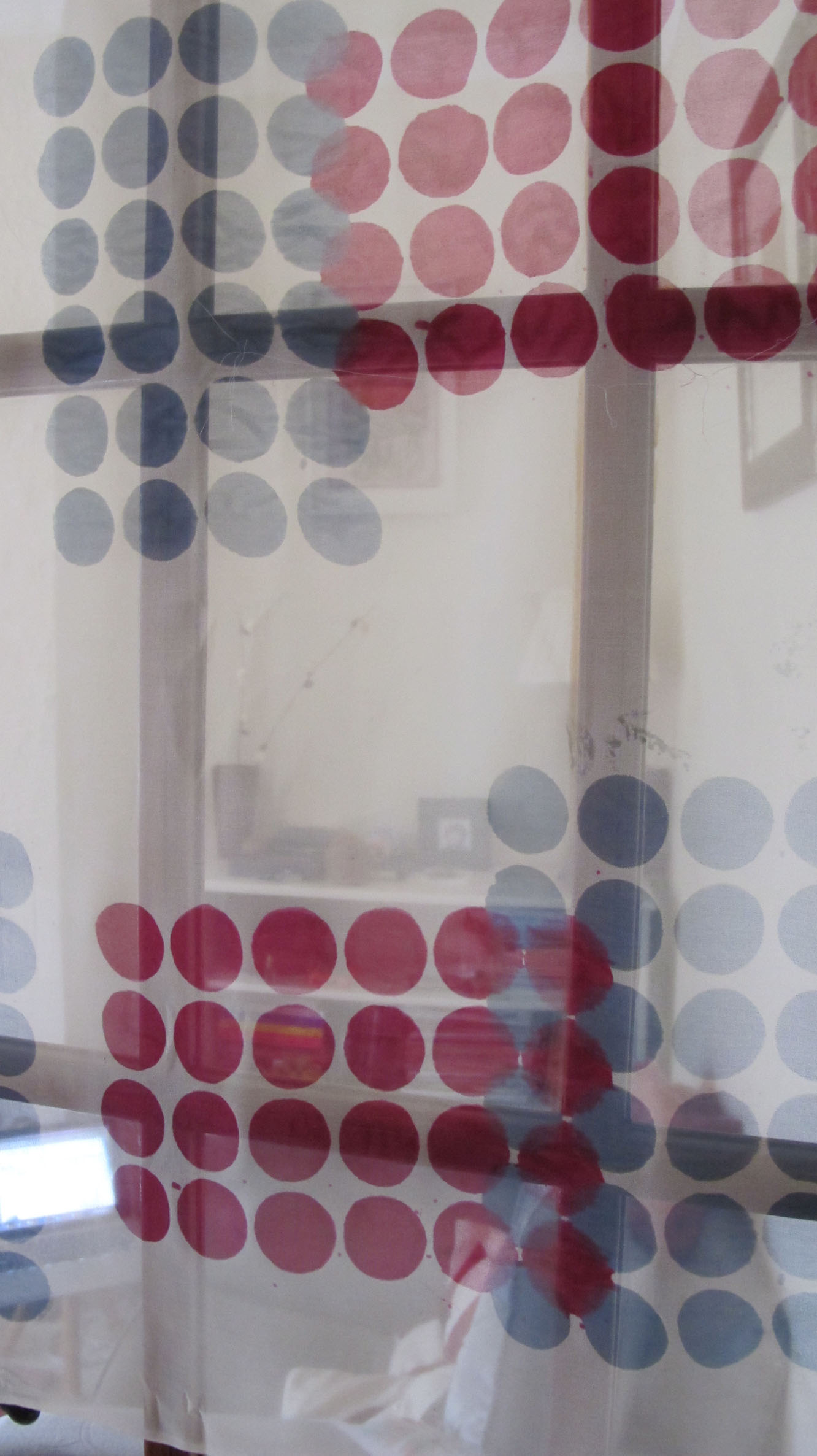 Now finally decided the colours for the Kimono and have screen printed the 1st silk which will be the sleeves.After the circles the screen print was finalised and then the script was added from a screen and as before this was finalised before felting started.
