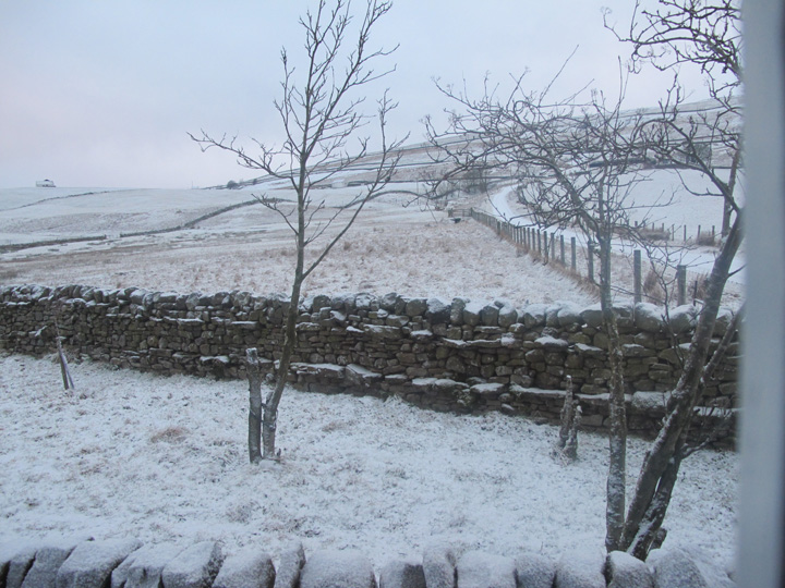 -6 outside but not too much snow.Had a great walk and saw a very new born calf shivering in our cold winter weather poor thing .When all you hear on the radio is death and destruction and anger it is refreshing to see the birth of an animal outside no help from the humans needed, Mother just getting on with it and she did look proud if you can say acow looks pleased with herself then she did.
