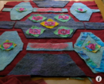 Using old  offcuts of prefelts to make something new .Cut these into a tile pattern also using hand dyed silks and cottons.