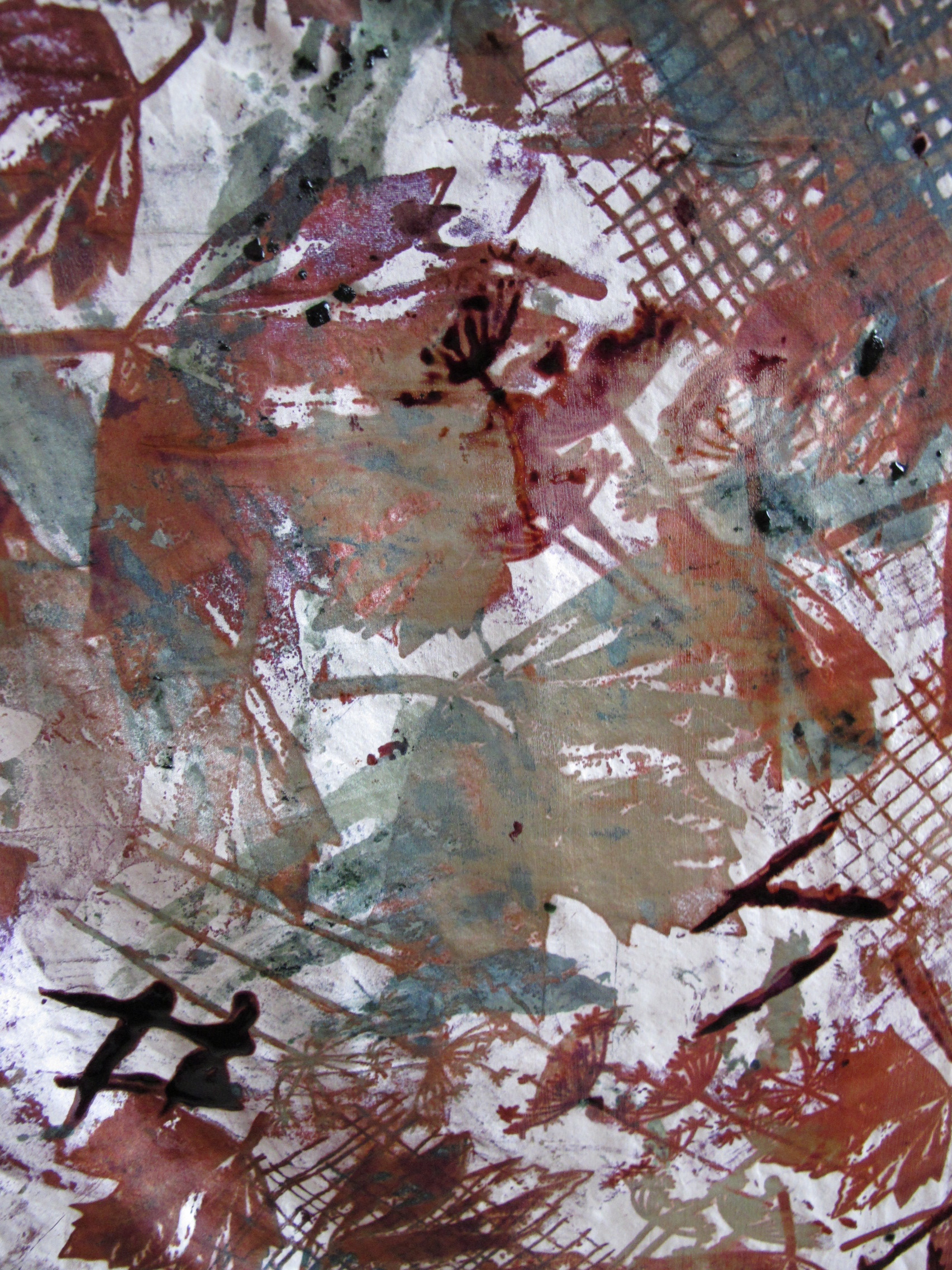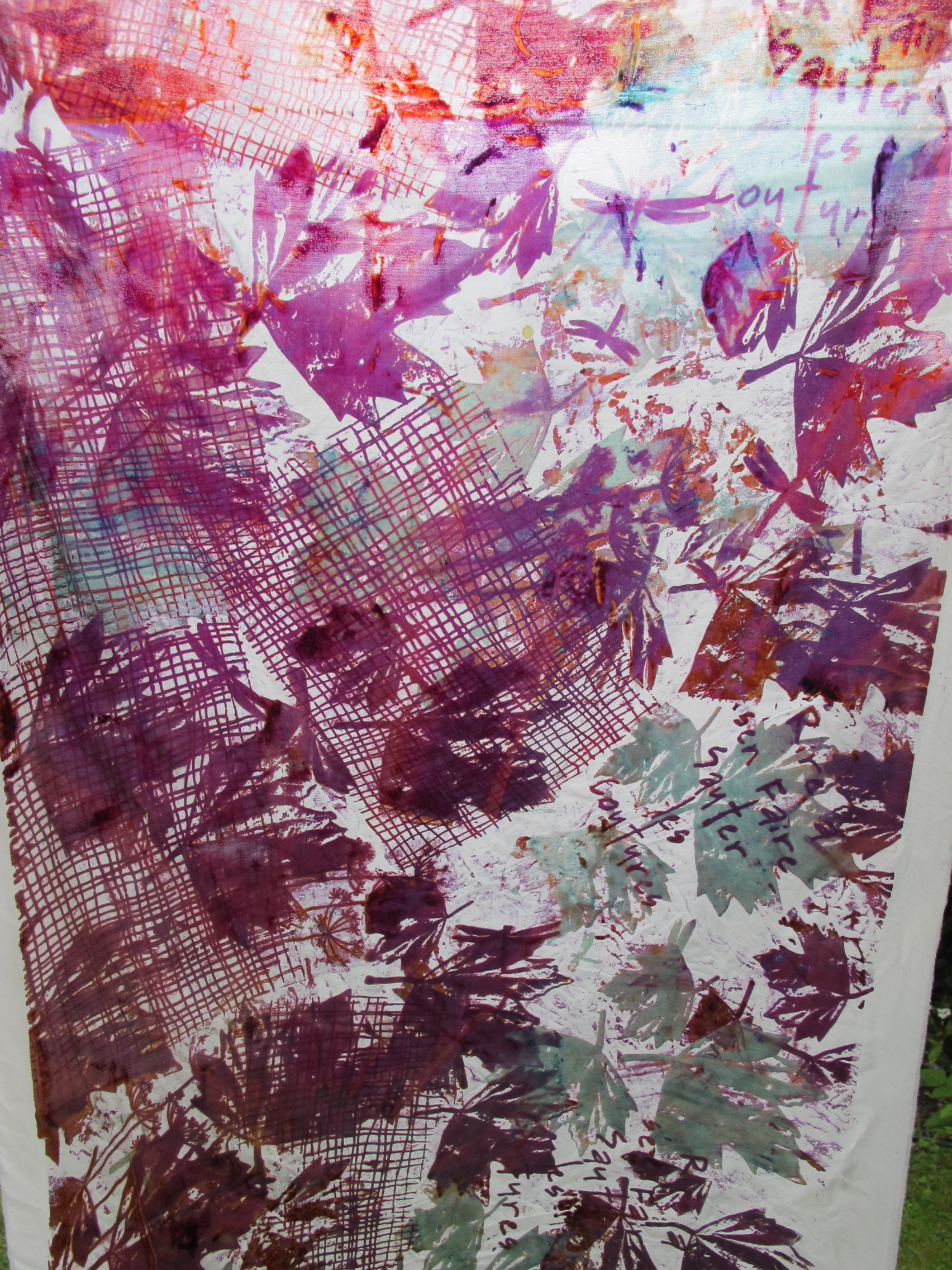 I mixed my dyes up and decided to thicken them and go with my love of screen printing .Leaves and grids and seed heads are the theme and below are some of my ooh my moments as the colours changed in front of my eyes .Love it want to do more isn’t nature so clever for us .