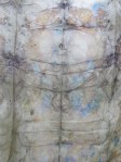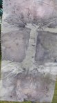 Yellow roses and blue delpniums really show up here added alum and an iron key to this as it simmered.Using many differing silks and keeping the rest the same which allows me to build up a reference section for my nuno felt.Di d not think the blue would show as well really please with this.