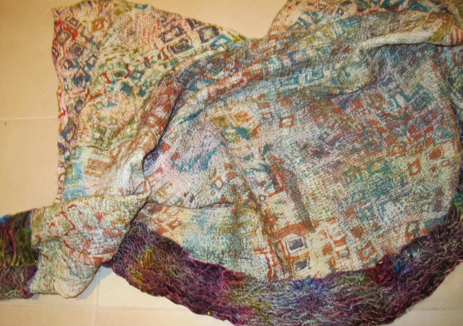 Felted silk velvet trim is on now and LOVE the Christmas party look this will give me worn over all black–keep me warm too.