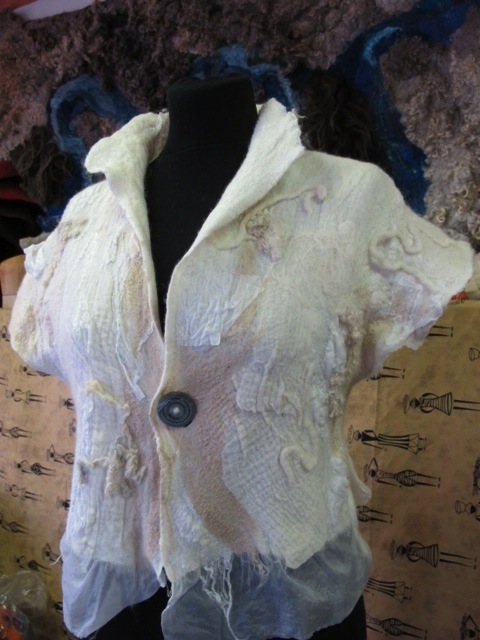 Charity took one of the templates from the new Nuno felting book and this is how she interpreted it and that is the good thing about design and how any one can put their own spin on the basic concept –love this Charity –thank you for testing it