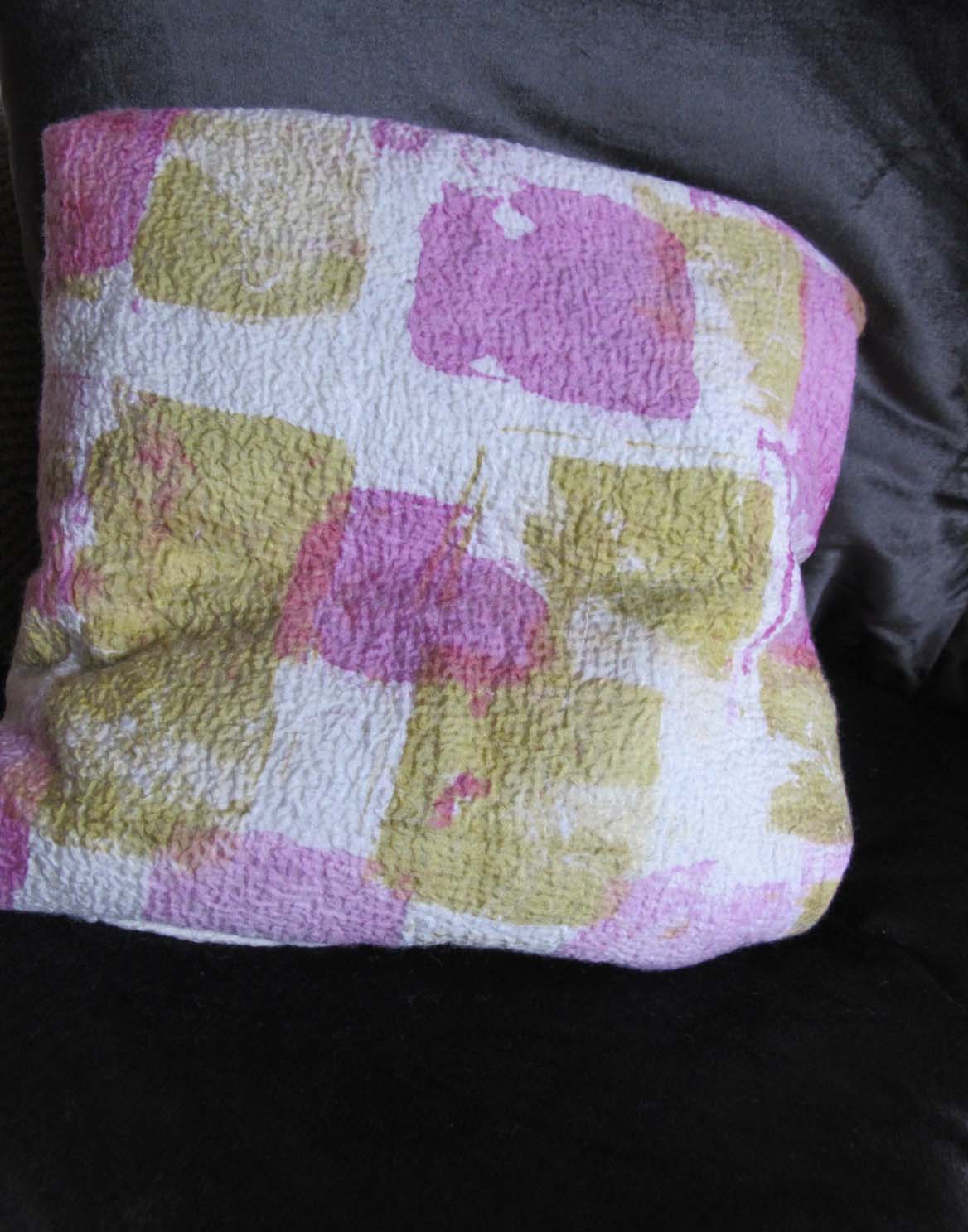 Nuno felt does not just have to be garment felting but lends itself so well to home furnishings and with deconstructed screen printing on the silks used then off we go.This piece looks good beneath my minstrel gallery and in the kitchen —-bizarre.