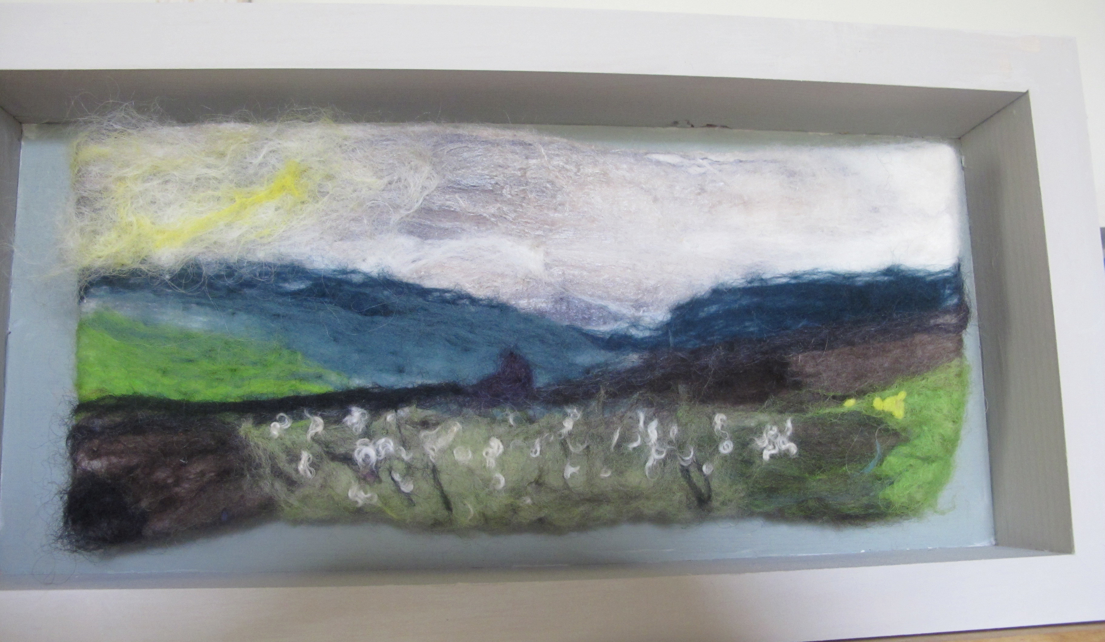 The wooden box frames are painted with Farrow and Ball paints designed to flatter the felting.