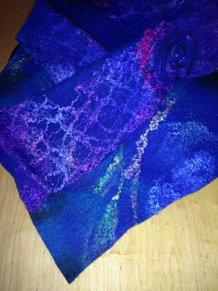 Christmas blue rich and warm with tons of silk thrown at the pieces and then hand finished,hand stitched ,bound buttonholes,ceramic buttons and boxed ready for the gallery at the studio.