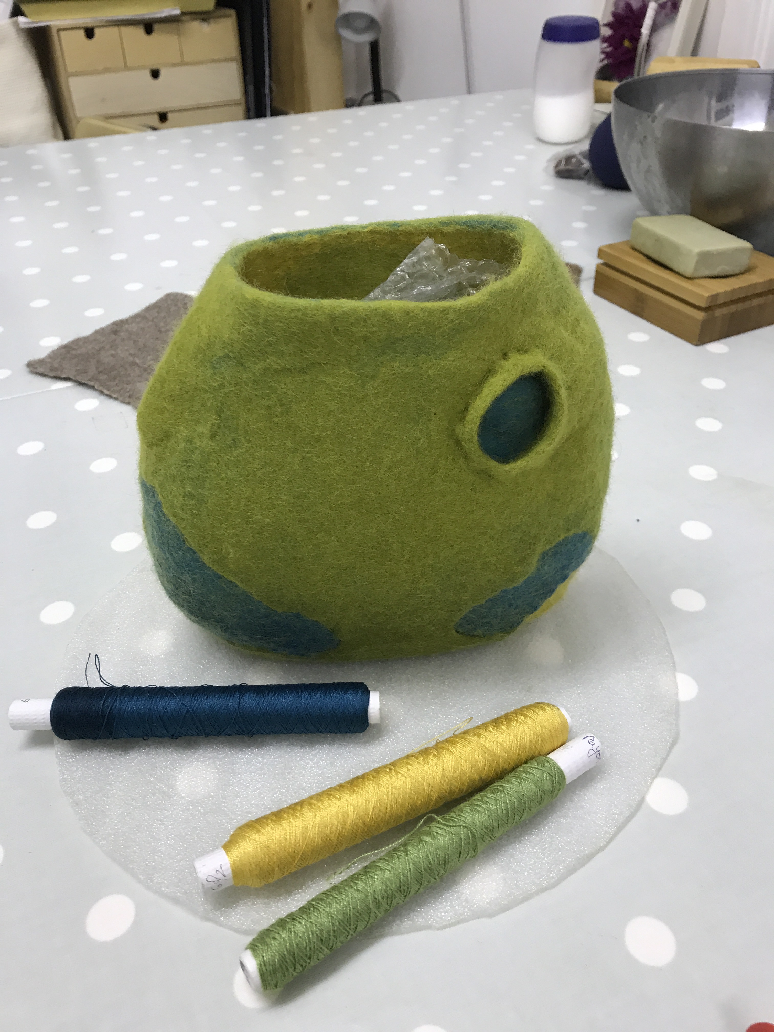 I have a perfect pink tulip with a lime streak and I think my new take on vessels will be just right to display the beauty of this variety. With enough turqouise to contrast the pinks and lime and a soft buttery yellow enhacing the greens of the stem.