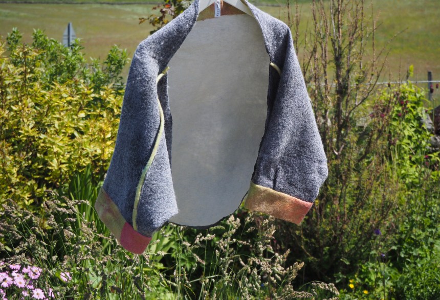 A new Nuno Felted piece from the studio- so silky and warm and the colours of fruit in my fruit bowl echoe against the dark grey/ blue of the stormy sky outside
