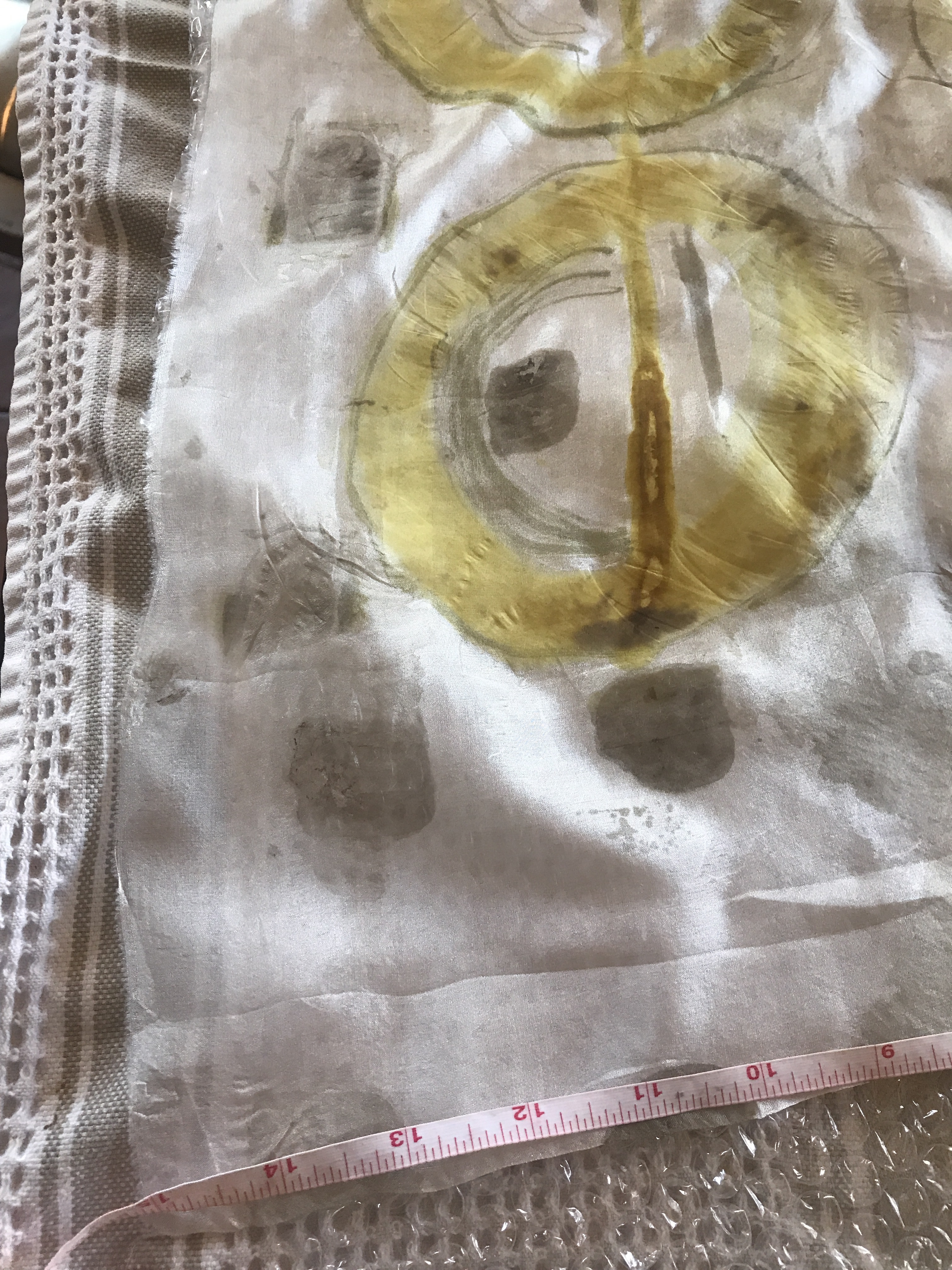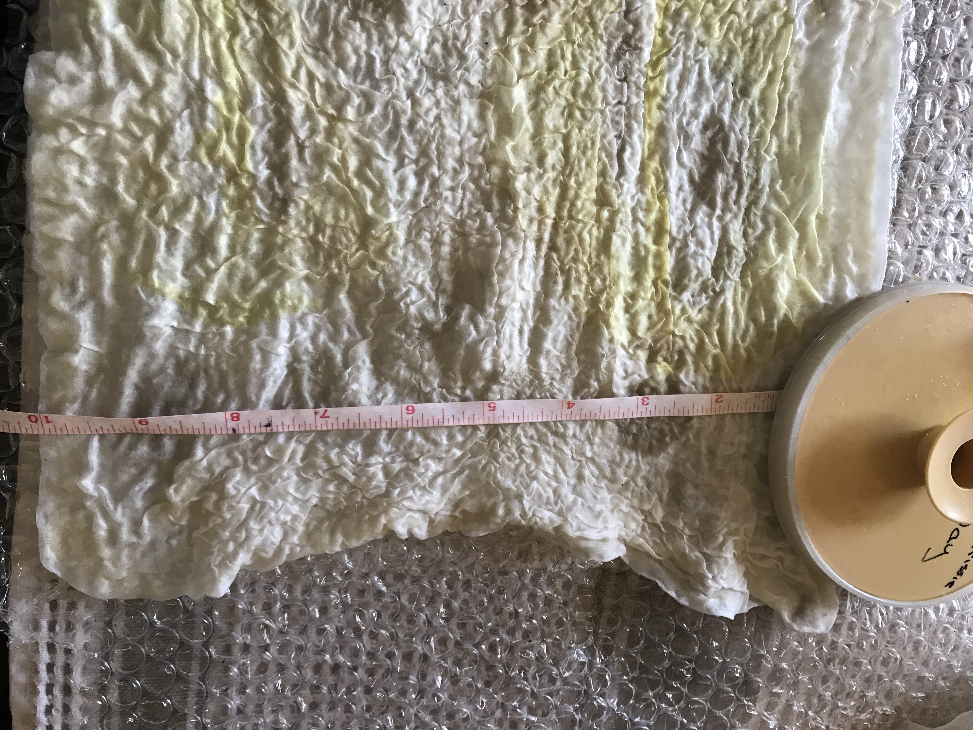 I took a14” square of dyed silk ready to felt and make a shrinkage swatch
