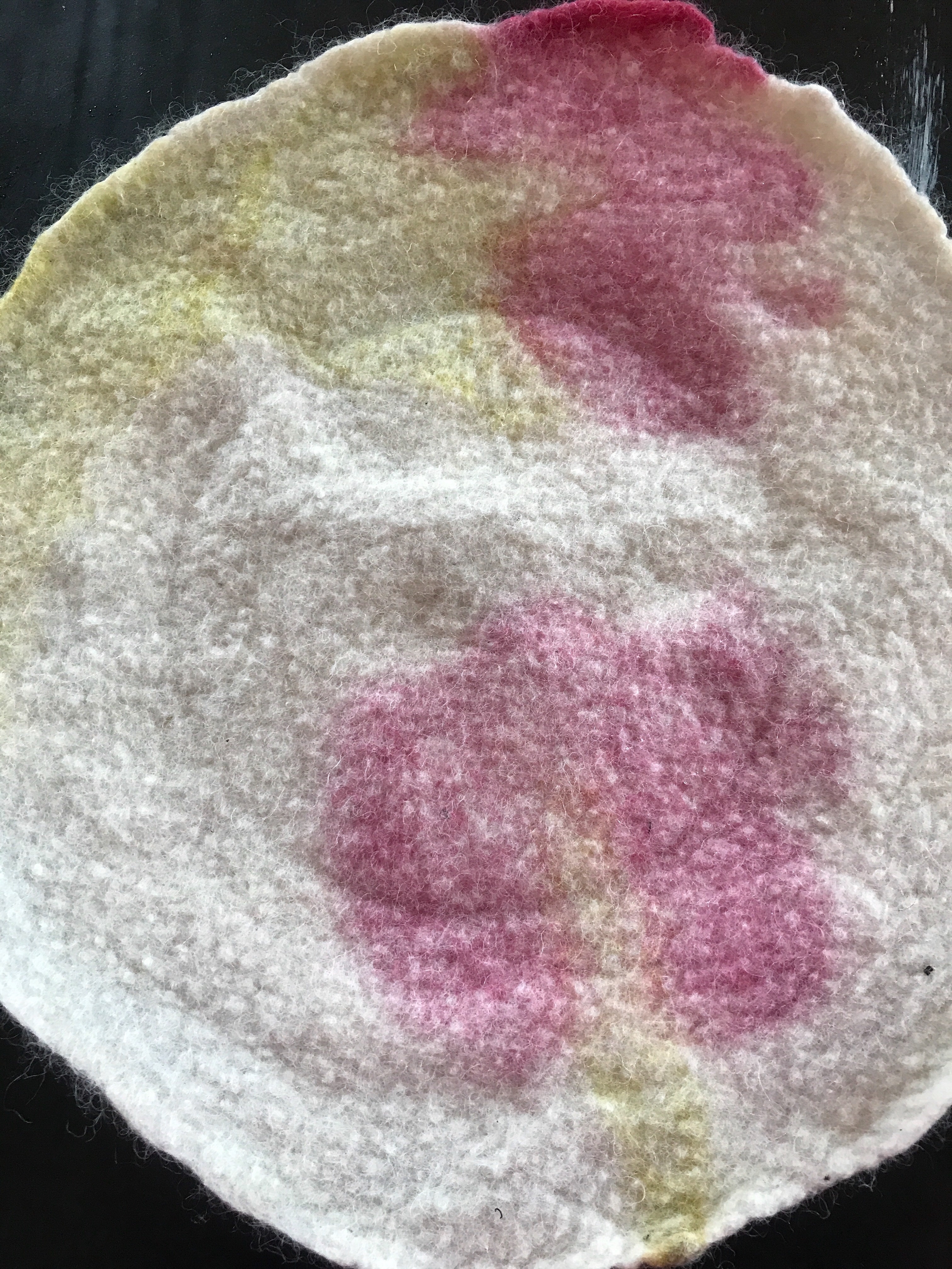 I calculate I need 16 gms of white 19 micron merino( WoW supplied) – my 2. Differing prefelts and this time it is Lime and Rose.