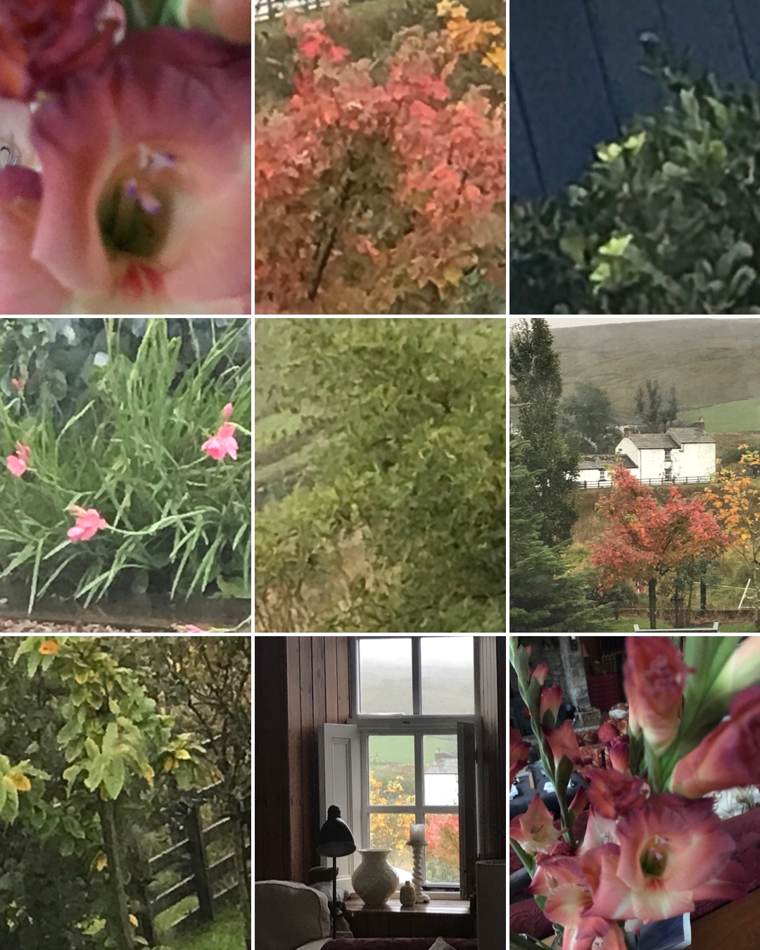 The late Autumnal floppy mini gladioli are so pretty right now against the sage green of the Eucalyptus and the slowly bronzing leaves of climbing roses.